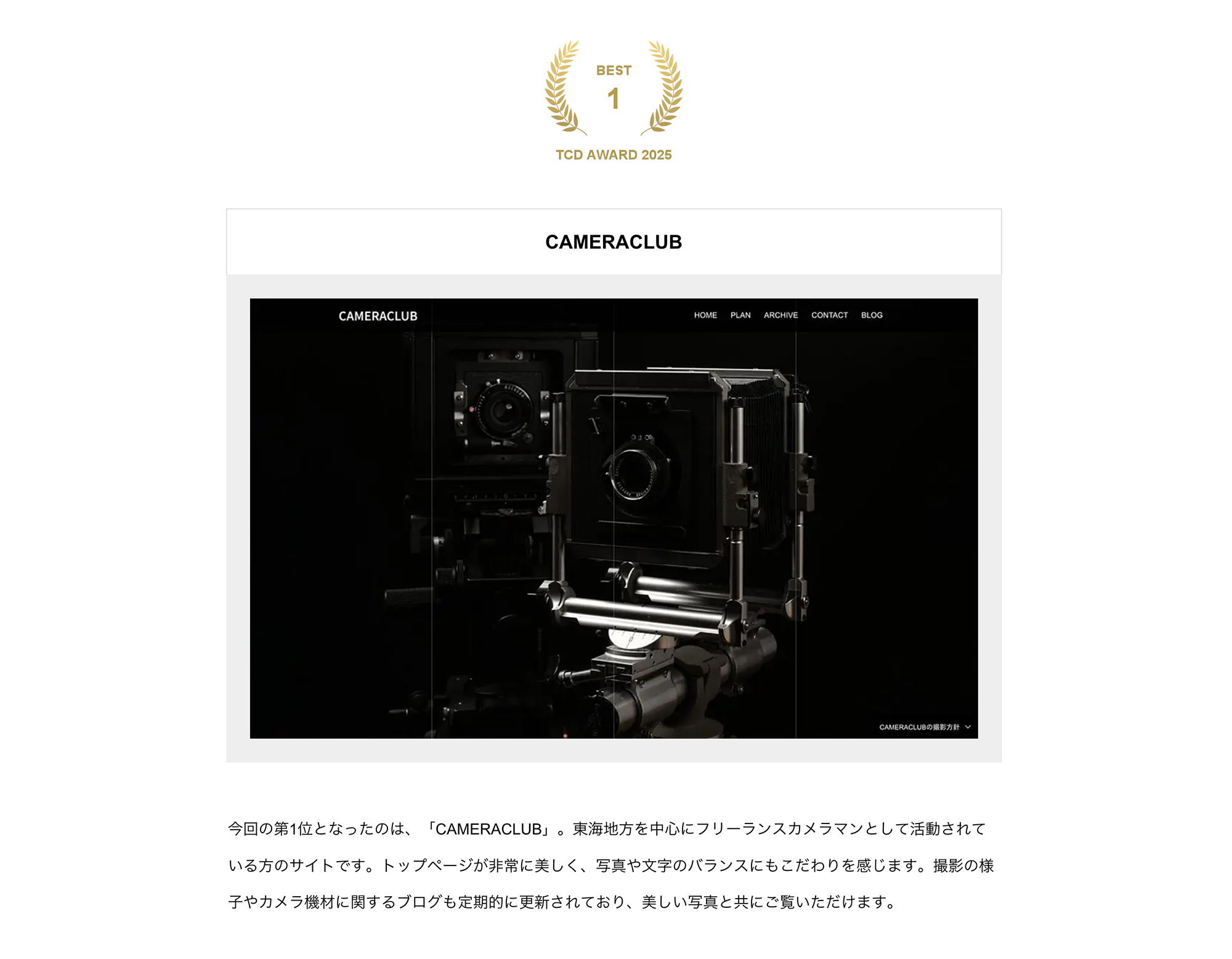 「TCD AWARD 2025」総合ランキング1位に輝きました!